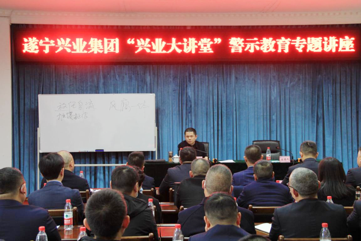 ? ? 11月26日,遂寧興業(yè)集團(tuán)舉辦“興業(yè)大講堂”警示教育專(zhuān)題講座,邀請(qǐng)市紀(jì)委副書(shū)記、市監(jiān)委副主任韓麟主講授課。集團(tuán)領(lǐng)導(dǎo)班子成員、中層干部及部分職工代表、各直屬企業(yè)高管共60人參加講座。